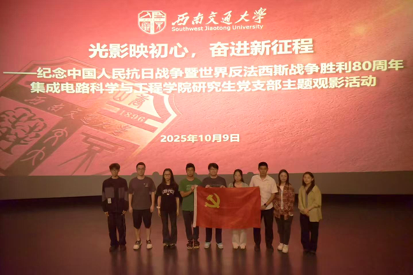 为深入学习贯彻习近平新时代中国特色社会主义思想,纪念中国人民抗日战争暨世界反法西斯战争胜利80周年,扎实推进爱国主义教育走深走实,集成电路科学与工程学院研究生党支部于2025年10月至12月精心策划并组织开展了“回首烽火路,奋进新时代”校级示范性主题教育实践活动。党支部通过构筑“光影铸魂—缅怀先烈—躬身实践—学思践悟”四维育人矩阵,引导支部成员在回望历史中厚植家国情怀,在躬身实践中勇担时代使命。
