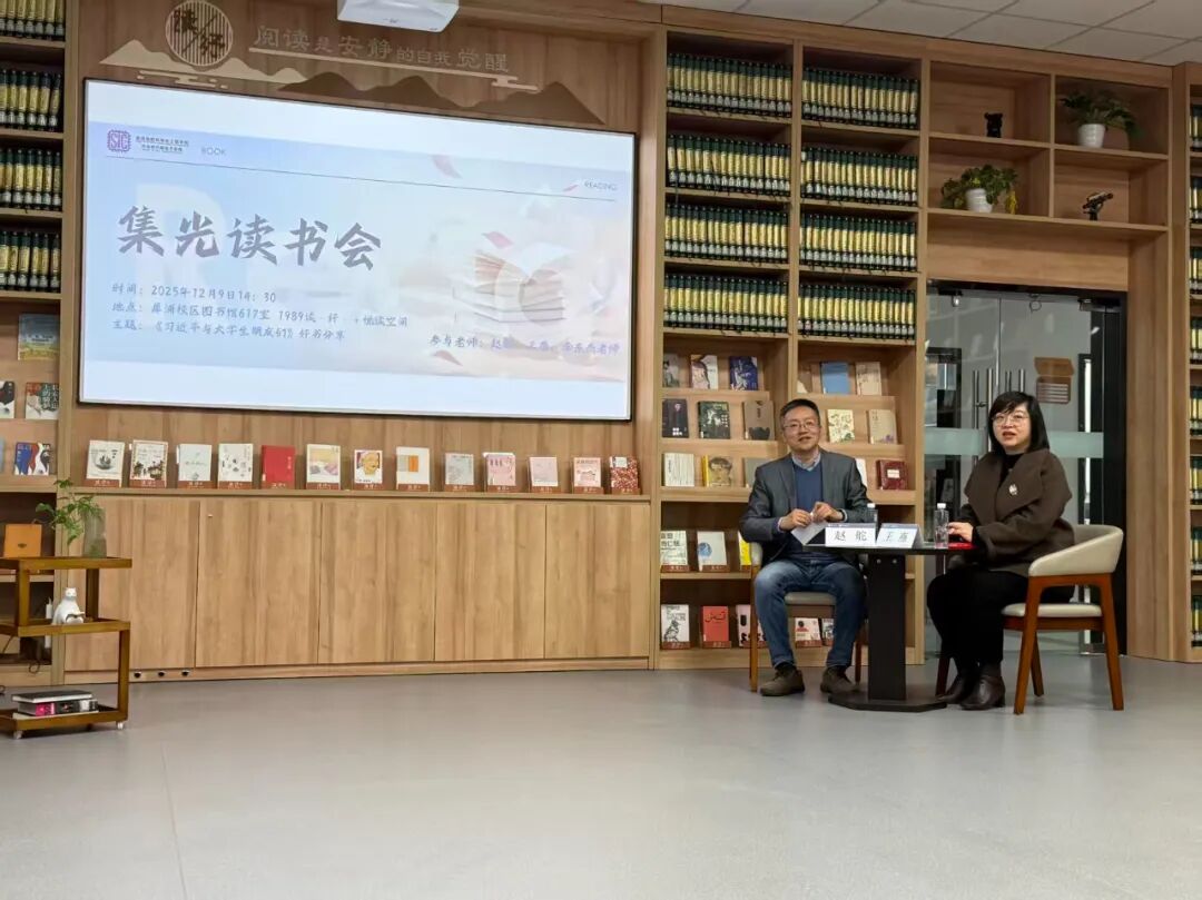 12月9日下午,集成电路科学与工程学院学生会在犀浦校区图书馆617室“读纾+阅读空间”成功举办第三期“集光读书会”。学院党委书记赵舵、党委副书记王燕,团委书记李东杰,辅导员苏放与学生会全体成员围坐一堂,共读《习近平与大学生朋友们》第二卷,以书为媒共话初心使命,让思政教育在沉浸式交流中走深走实。