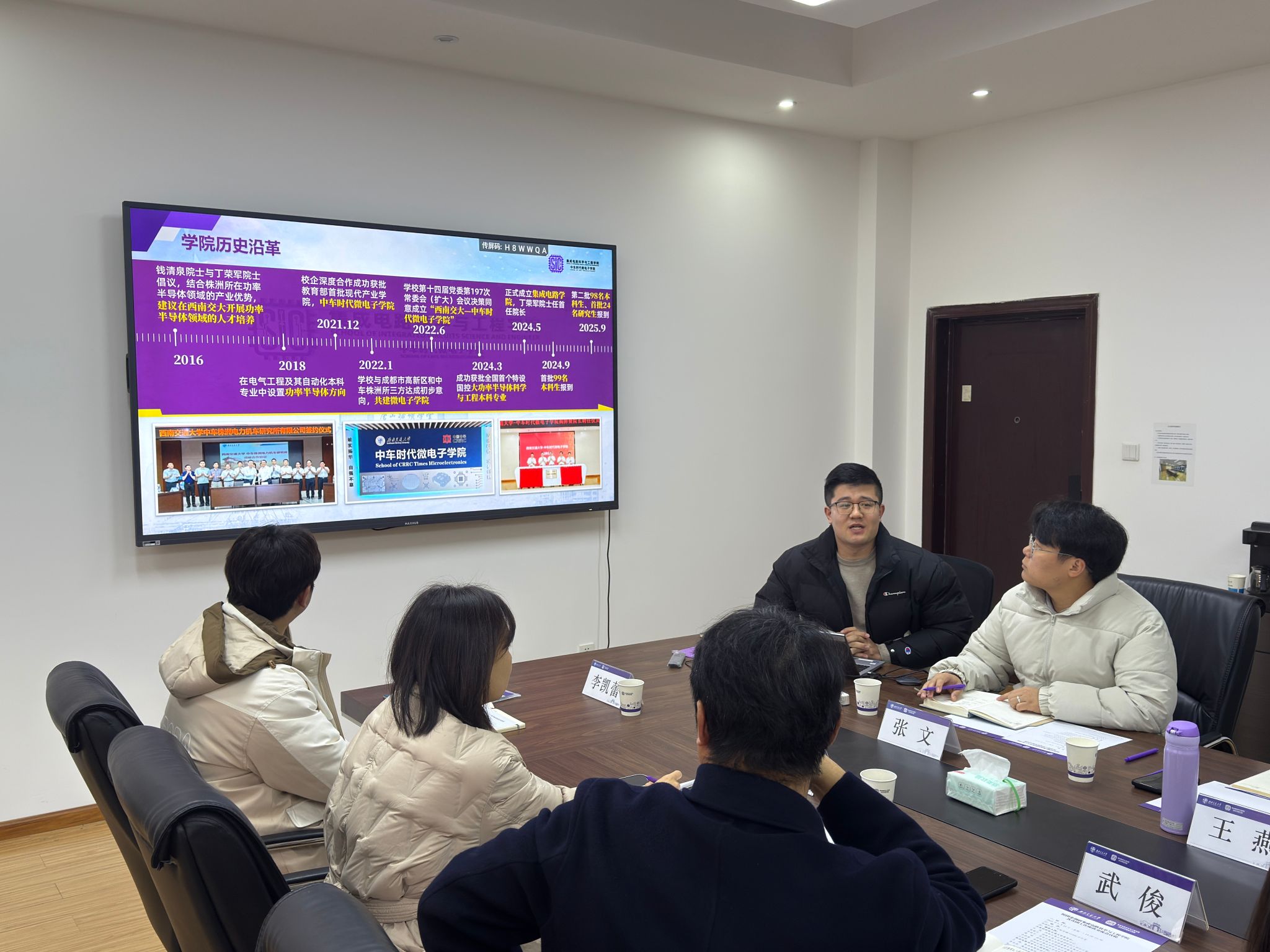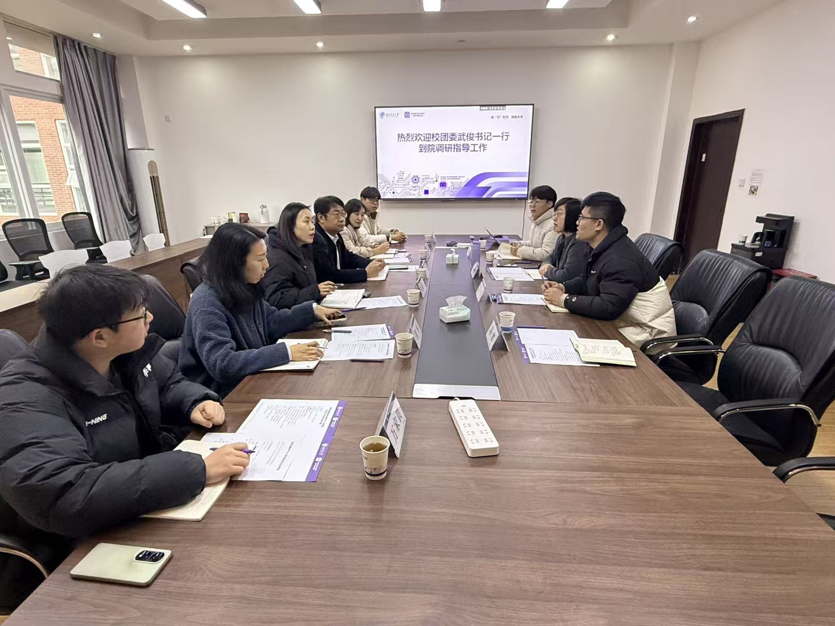 1月19日下午,校团委书记武俊,校团委青年发展办公室主任李振宇、组织工作办公室主任张敬文、宣传教育办公室副主任薄琳一行莅临学院调研共青团工作,学院党委书记赵舵、党委副书记王燕、团委书记李东杰,辅导员张文、苏放参加会议。会议由王燕主持。